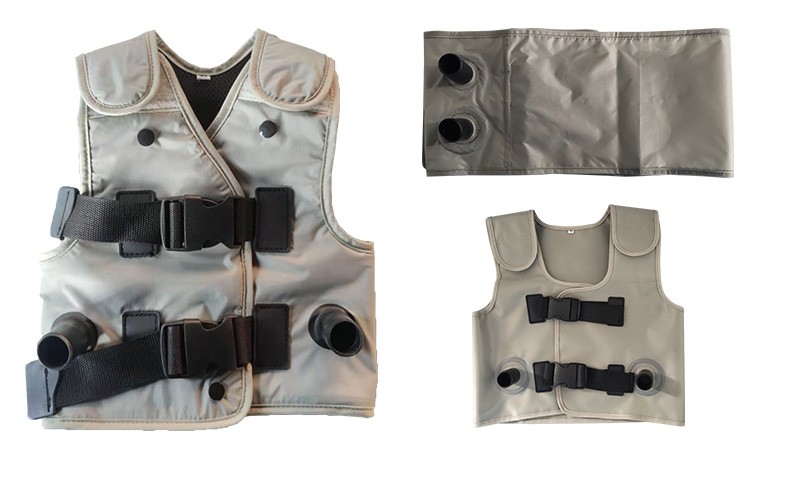 背心式排痰機作用原理: 通過模擬正常生理咳嗽的原理,將患者所穿專用充氣背心用導氣軟管連接到高速脈沖泵上,并快速地充氣和放氣,使患者胸壁發生有規律的舒張運動,患者氣道和肺部發生自主的震顫氣流和定向引流力,促使呼吸道粘液及各個肺葉深部代謝物松弛,液化、脫落;并在定向引流力的作用下將已液化脫落的代謝物按照選擇的方向(如細支氣管→支氣管→氣管)排出體外。